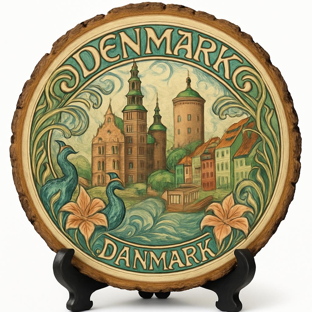 Aalborg Denmark Souvenir Gift – Wood Slice Plaque for Wall or Table, Vintage Rustic City Art for Tourists, Plate Collectors & Travel Lovers, Danish Decorative Gift. Explore the vibrant city of Aalborg with this rustic wood slice plaque, showcasing the city’s modern architecture, bustling street life, and the iconic Aalborg Tower. This handcrafted piece is a perfect keepsake for those who love this dynamic Danish city.