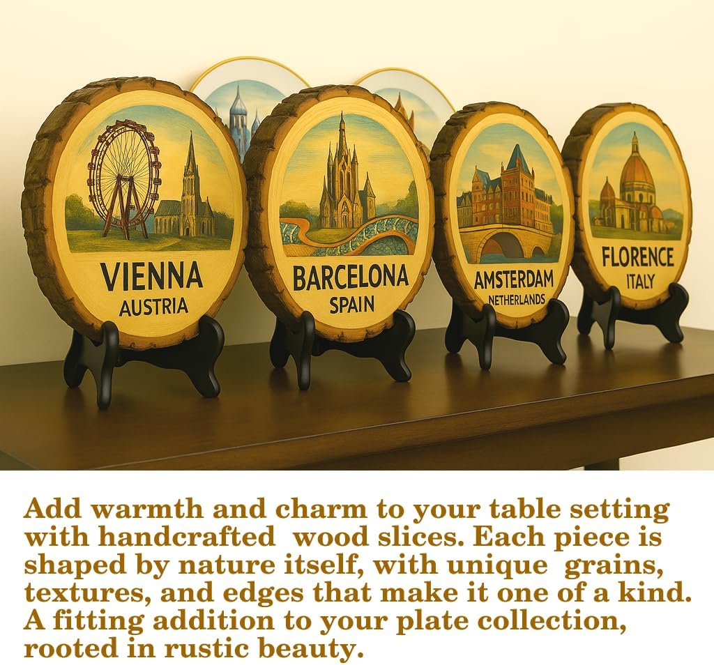 Note: Due to the natural qualities of wood, slight variations in size, shape, and background texture may occur. We make every effort to ensure your piece closely resembles the photo. Please note that wood coloration and grain may differ from slice to slice, as each piece is unique. This can result in subtle differences in tone and visual texture beneath the artwork. Your order includes a complimentary standard display stand (as shown in the accessory image), along with hanging hardware for flexible use—whether placed on a table or mounted on a wall. Kindly be aware that the main product photo may feature a different stand than the standard option. If you’re interested in alternative styles, we offer a selection of stand types in our store.