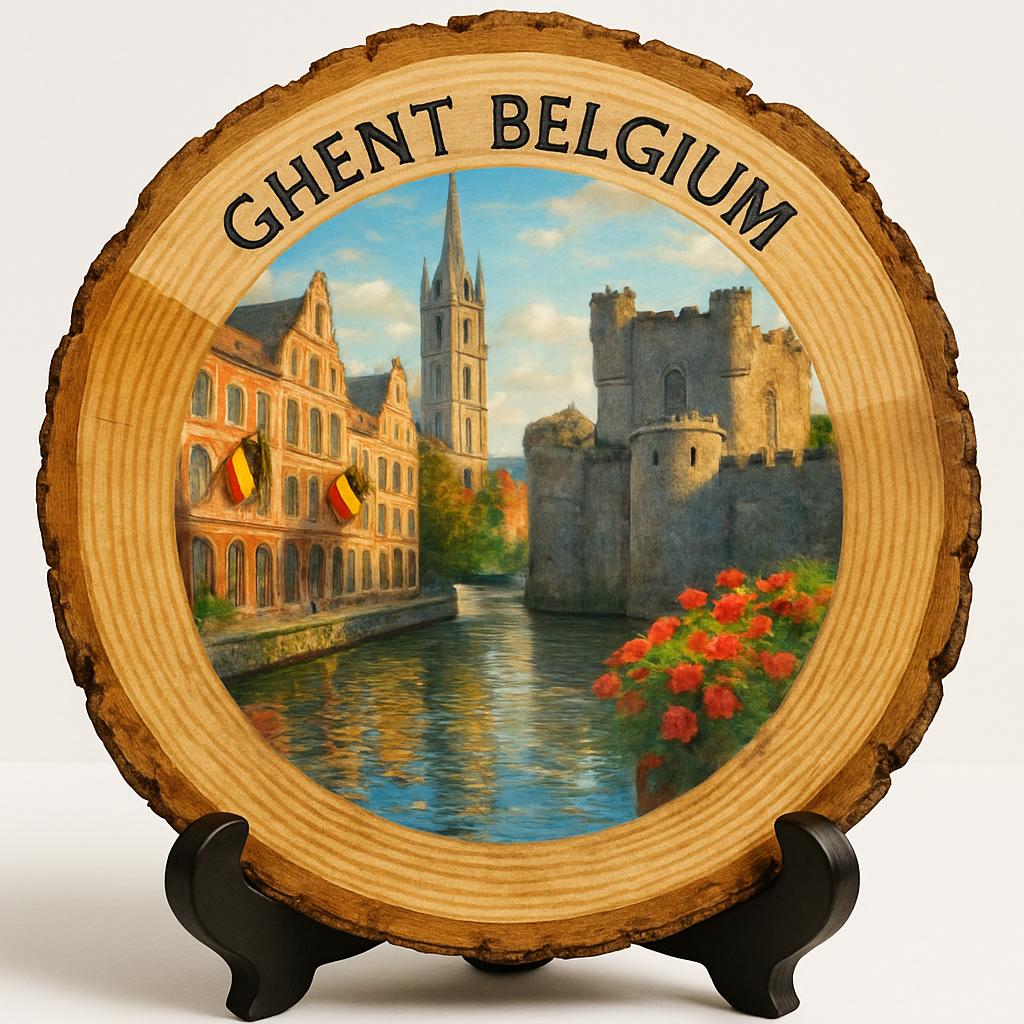 Ghent Belgium Souvenir Gift – Wood Slice Plaque for Wall or Table, Vintage Rustic City Art for Tourists, Plate Collectors & Travel Lovers, Belgian Decorative Gift Immerse yourself in the enchanting charm of Ghent with this rustic wood slice plaque showcasing a vintage-style illustration of the iconic Gravensteen Castle, picturesque canals, and vibrant medieval architecture. Perfect for tourists, plate collectors, and lovers of Belgian culture, this handcrafted art piece serves as a delightful reminder of your visit or a thoughtful gift for someone who appreciates the rich history and beauty of this captivating city.