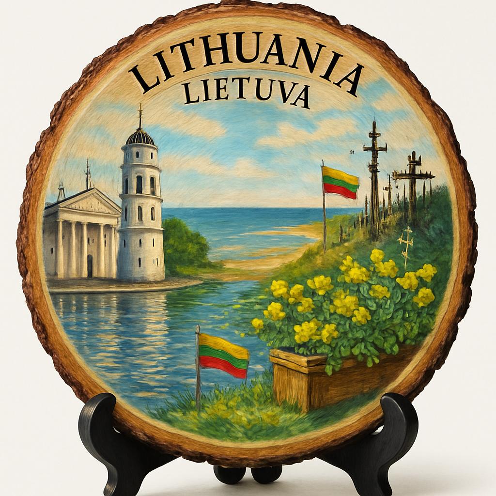 Kernavė Lithuania Souvenir Gift – Wood Slice Plaque for Wall or Table, Vintage Rustic City Art for Tourists, Plate Collectors & Travel Lovers, Lithuanian Decorative Gift Immerse yourself in the rich history of Kernavė with this beautifully crafted wood slice plaque, showcasing a vintage-style illustration of the ancient mounds and lush landscapes that define this UNESCO World Heritage site. Perfect for tourists, history enthusiasts, and lovers of Lithuanian culture, this unique art piece serves as a memorable keepsake from your visit or a thoughtful gift for someone who appreciates the charm of Lithuania’s past.