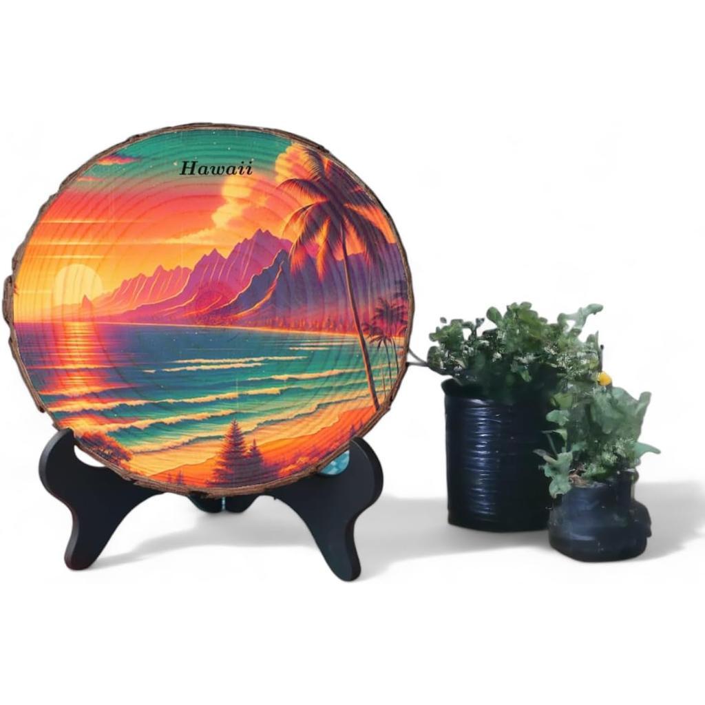 Note: Due to the natural qualities of wood, slight variations in size, shape, and background texture may occur. We make every effort to ensure your piece closely resembles the photo. Please note that wood coloration and grain may differ from slice to slice, as each piece is unique. This can result in subtle differences in tone and visual texture beneath the artwork. Your order includes a complimentary standard display stand (as shown in the accessory image), along with hanging hardware for flexible use—whether placed on a table or mounted on a wall. Kindly be aware that the main product photo may feature a different stand than the standard option. If you’re interested in alternative styles, we offer a selection of stand types in our store.