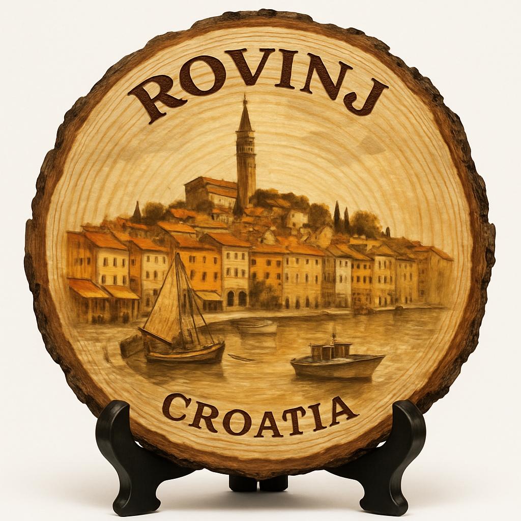 Note: Due to the natural qualities of wood, slight variations in size, shape, and background texture may occur. We make every effort to ensure your piece closely resembles the photo. Please note that wood coloration and grain may differ from slice to slice, as each piece is unique. This can result in subtle differences in tone and visual texture beneath the artwork. Your order includes a complimentary standard display stand (as shown in the accessory image), along with hanging hardware for flexible use—whether placed on a table or mounted on a wall. Kindly be aware that the main product photo may feature a different stand than the standard option. If you’re interested in alternative styles, we offer a selection of stand types in our store. Split Croatia Souvenir Gift – Wood Slice Plaque for Wall or Table, Vintage Rustic City Art for Tourists, Plate Collectors & Travel Lovers, Dalmatian Decorative Gift Capture the essence of Split with this exquisite wood slice plaque that features a vintage-style illustration of the breathtaking Marjan Hill, the bustling fish market, and the rich history that permeates this coastal gem. Ideal for tourists, plate collectors, and anyone enchanted by Croatian heritage, this handcrafted art piece is a perfect keepsake from your travels or a unique gift for a friend who loves the Mediterranean lifestyle.