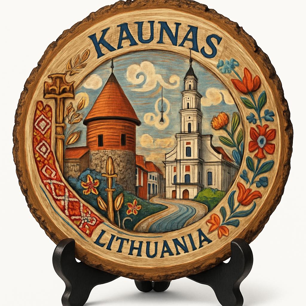 Trakai Lithuania Souvenir Gift – Wood Slice Plaque for Wall or Table, Vintage Rustic City Art for Tourists, Plate Collectors & Travel Lovers, Lithuanian Decorative Gift Immerse yourself in the enchanting beauty of Trakai with this rustic wood slice plaque showcasing a vintage-style illustration of the iconic Trakai Island Castle surrounded by serene lakes and lush forests. Perfect for tourists, plate collectors, and lovers of Lithuanian culture, this handcrafted art piece serves as a delightful reminder of your visit to this picturesque town, known for its rich history and stunning landscapes.