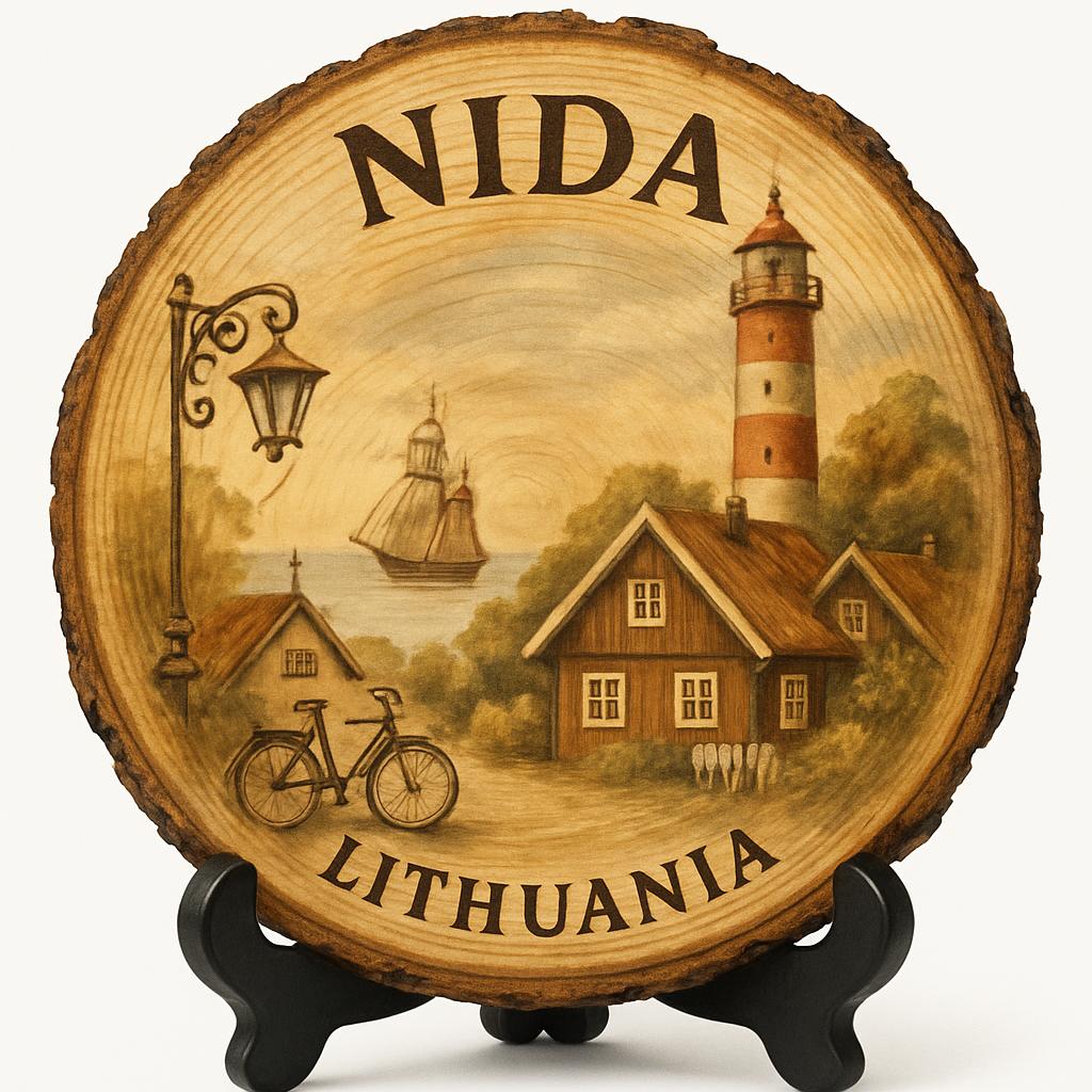 Trakai Lithuania Souvenir Gift – Wood Slice Plaque for Wall or Table, Vintage Rustic City Art for Tourists, Plate Collectors & Travel Lovers, Lithuanian Decorative Gift Immerse yourself in the enchanting beauty of Trakai with this rustic wood slice plaque showcasing a vintage-style illustration of the iconic Trakai Island Castle surrounded by serene lakes and lush greenery. Perfect for tourists, plate collectors, and lovers of Lithuanian culture, this handcrafted art piece serves as a delightful reminder of your visit to this picturesque town, known for its rich history and stunning landscapes.