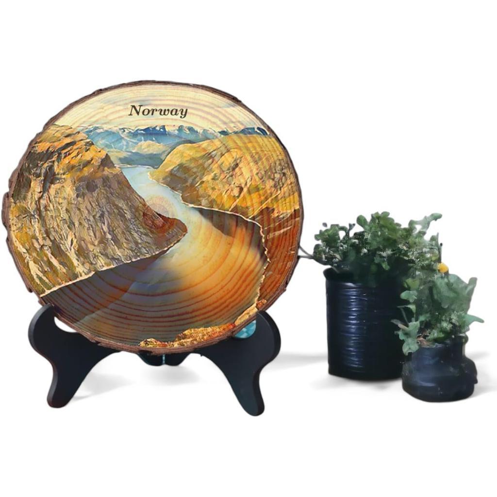 Note: Due to the natural qualities of wood, slight variations in size, shape, and background texture may occur. We make every effort to ensure your piece closely resembles the photo. Please note that wood coloration and grain may differ from slice to slice, as each piece is unique. This can result in subtle differences in tone and visual texture beneath the artwork. Your order includes a complimentary standard display stand (as shown in the accessory image), along with hanging hardware for flexible use—whether placed on a table or mounted on a wall. Kindly be aware that the main product photo may feature a different stand than the standard option. If you’re interested in alternative styles, we offer a selection of stand types in our store.