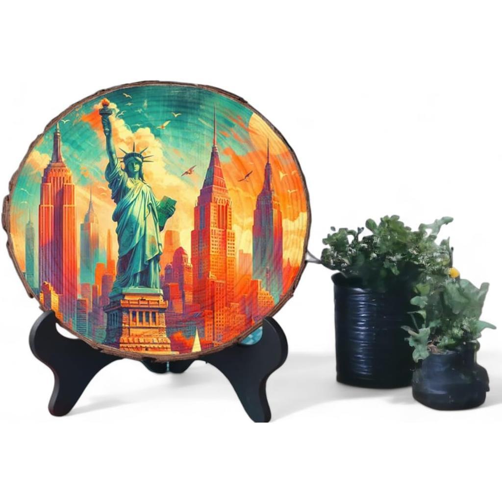 Note: Due to the natural qualities of wood, slight variations in size, shape, and background texture may occur. We make every effort to ensure your piece closely resembles the photo. Please note that wood coloration and grain may differ from slice to slice, as each piece is unique. This can result in subtle differences in tone and visual texture beneath the artwork. Your order includes a complimentary standard display stand (as shown in the accessory image), along with hanging hardware for flexible use—whether placed on a table or mounted on a wall. Kindly be aware that the main product photo may feature a different stand than the standard option. If you’re interested in alternative styles, we offer a selection of stand types in our store.
